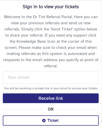 To review your previously submitted referrals, click on the [Receive Link], and an access link will be sent to your email address. This will last for 24 hours and is entirely secure.
